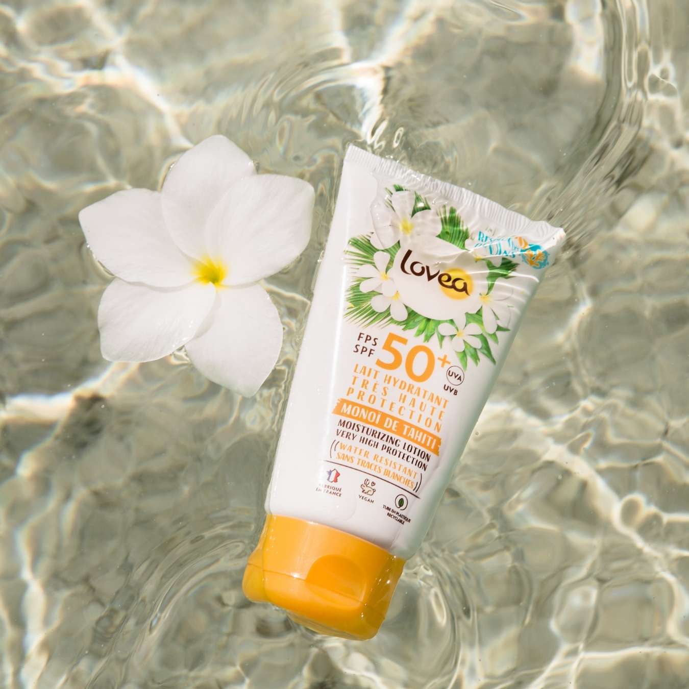 A la recherche de la crème solaire indice 50 ? Découvre les sprays solaires, laits solaires, brumes solaires et sticks solaires Lovea indice de protection FPS 50. Une très haute protection solaire permet de protéger immédiatement et efficacement les peaux même claires et sensibles des rayons UVA/UVB. Tu peux dire adieu aux coups de soleil cet été en appliquant régulièrement ta crème solaire 50 et en choisissant un lait, un spray, une brume et ou un stick de haute ou très haute protection solaire. Leur formule hydratante peut être utilisé par toute la famille dès 3 ans sur le visage et le corps. Fabriqués en France, ces produits solaires ont une formule clean : pas d'ingrédients décriés ou préoccupants. Choisir un solaire Lovea, c'est aussi choisir un produit solaire vegan, garantie sans traces blanches qui résiste à l'eau et qui est testé sous contrôle dermatolgique. Les formules de nos crèmes solaires pour adultes sont enrichies en Huile de Monoï de Tahiti sourcée de façon responsable. Les filtres solaires nouvelle génération choisis pour ces produits solaires sont respectueux de la peau et des océans.