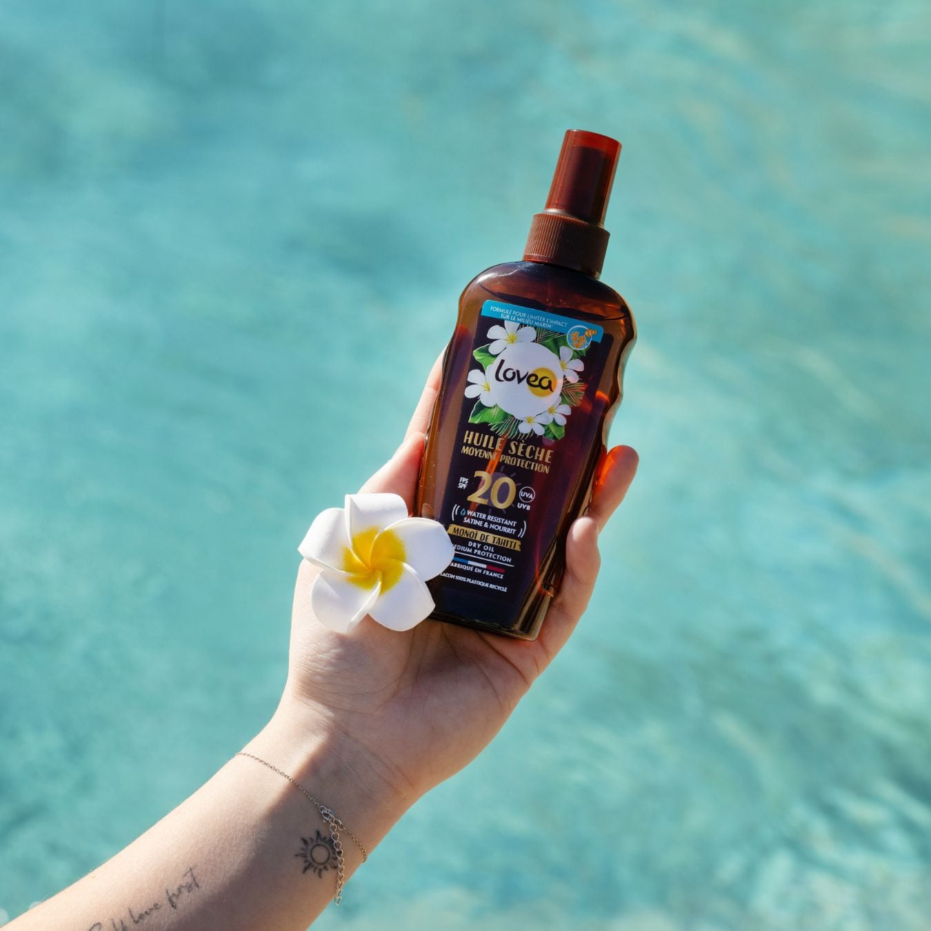 1% de Monoï de Tahiti. ISOPROPYL PALMITATE ; CAPRYLIC/CAPRIC TRIGLYCERIDE ; C12-15 ALKYL BENZOATE ; COCO-CAPRYLATE/CAPRATE ; DIBUTYL ADIPATE ; DIETHYLAMINO HYDROXYBENZOYL HEXYL BENZOATE ; ETHYLHEXYL TRIAZONE ; BIS-ETHYLHEXYLOXYPHENOL METHOXYPHENYL TRIAZINE ; CAPRYLOYL GLYCERIN/SEBACIC ACID COPOLYMER ; PARFUM (FRAGRANCE) ; COCOS NUCIFERA (COCONUT) OIL; GARDENIA TAITENSIS FLOWER EXTRACT ; TOCOPHEROL ; HELIANTHUS ANNUUS (SUNFLOWER) SEED OIL ; GERANIOL ; EUGENOL ; BENZYL ALCOHOL