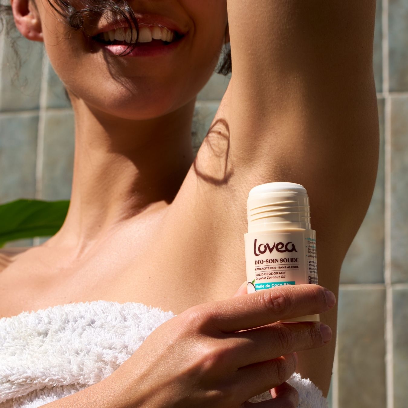 Le déodorant solide coco Lovea protège des odeurs et laisse un parfum gourmand et enveloppant. Sa texture fondante glisse sur la peau sans la déssecher pour une sensation de confort. Ce déodorant laisse un parfum coco aux notes fraiches et gourmandes.