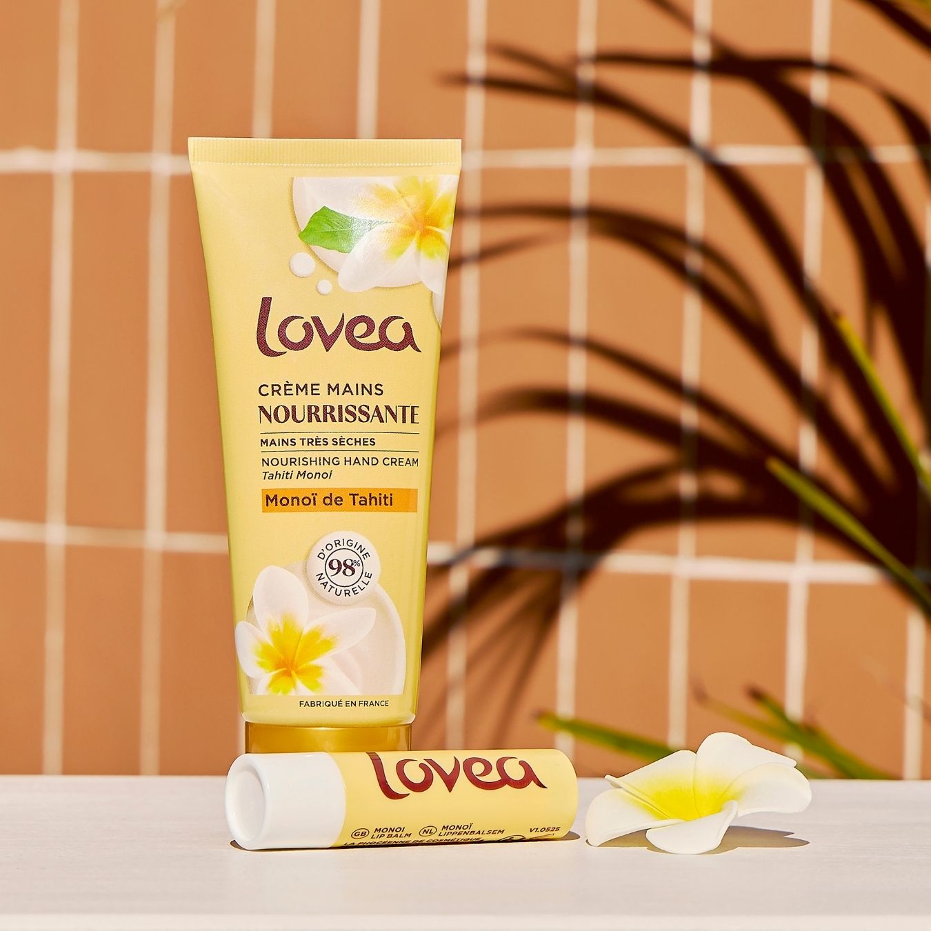 e Duo Mains & Lèvres au Monoï réunit deux soins indispensables au quotidien pour nourrir les lèvres et les mains. Enrichi en huile de Monoï de Tahiti, ce duo associe une crème mains et un baume lèvres pour des mains et des lèvres nourries et adorablement parfumées.