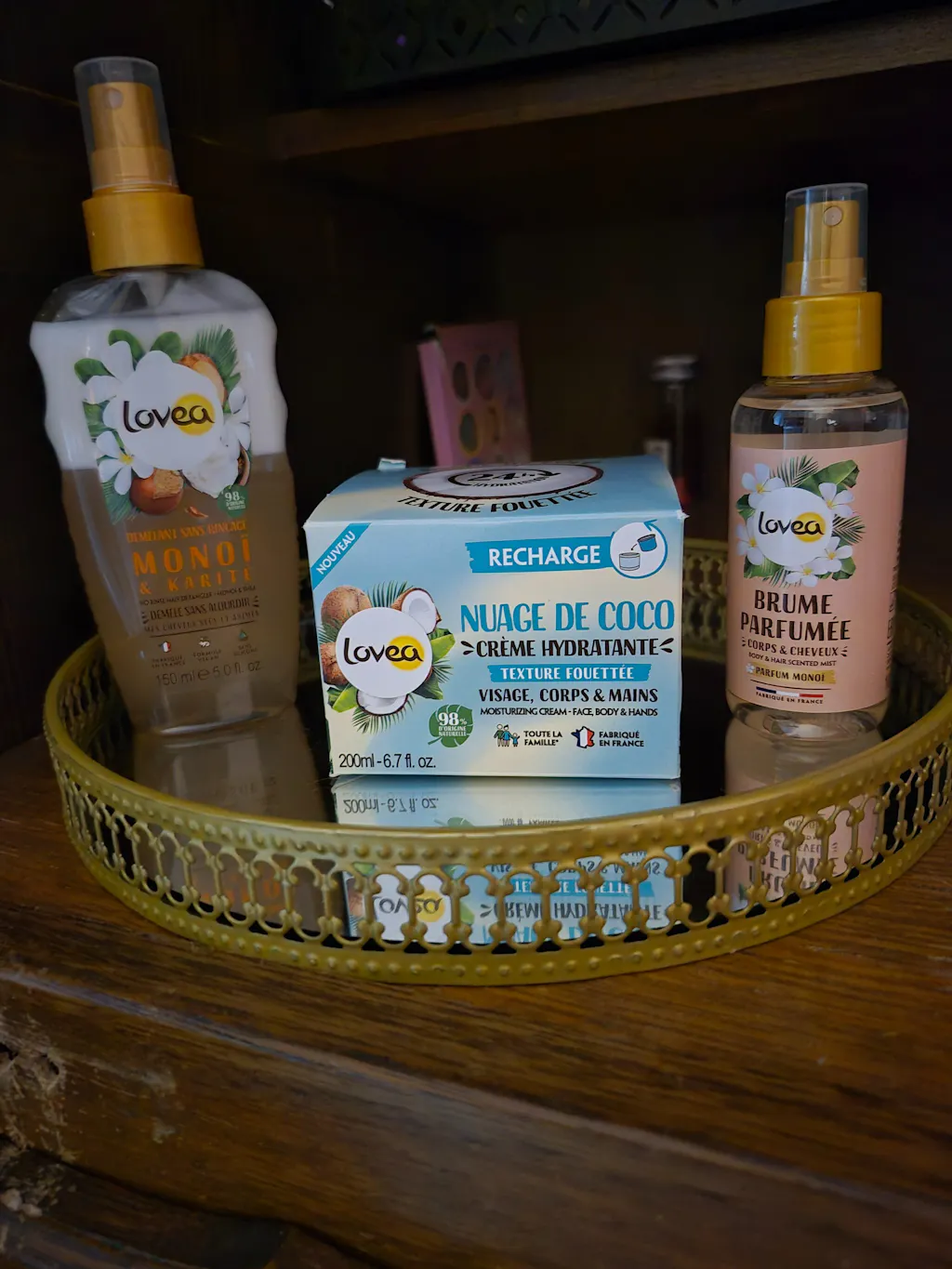RECHARGE CREME HYDRATANTE NUAGE DE COCO - INGRÉDIENTS : AQUA (WATER) ; DICAPRYLYL ETHER ; GLYCERIN ; CETEARYL ALCOHOL ; COCO-CAPRYLATE/CAPRATE ; COCOS NUCIFERA (COCONUT) OIL ; OLUS OIL (VEGETABLE OIL) ; GLYCERYL GLUCOSIDE ; ERYTHRITOL ; PENTYLENE GLYCOL ; SODIUM STEAROYL GLUTAMATE ; LEVULINIC ACID ; CETEARYL GLUCOSIDE ; SODIUM LEVULINATE ; PARFUM (FRAGRANCE) ; GELLAN GUM ; TOCOPHEROL ; SODIUM BENZOATE ; CITRIC ACID ; COUMARIN ; TERPINEOL ; VANILLIN ; AMYL SALYCILATE.